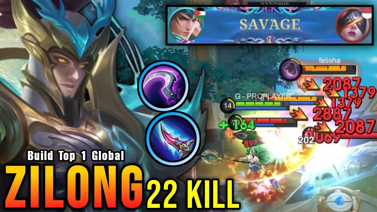 SAVAGE + 22 Kills!! MVP 14.5 Points Zilong 0.5 Sec Delete Build!! - Build Top 1 Global Zilong ~ MLBB