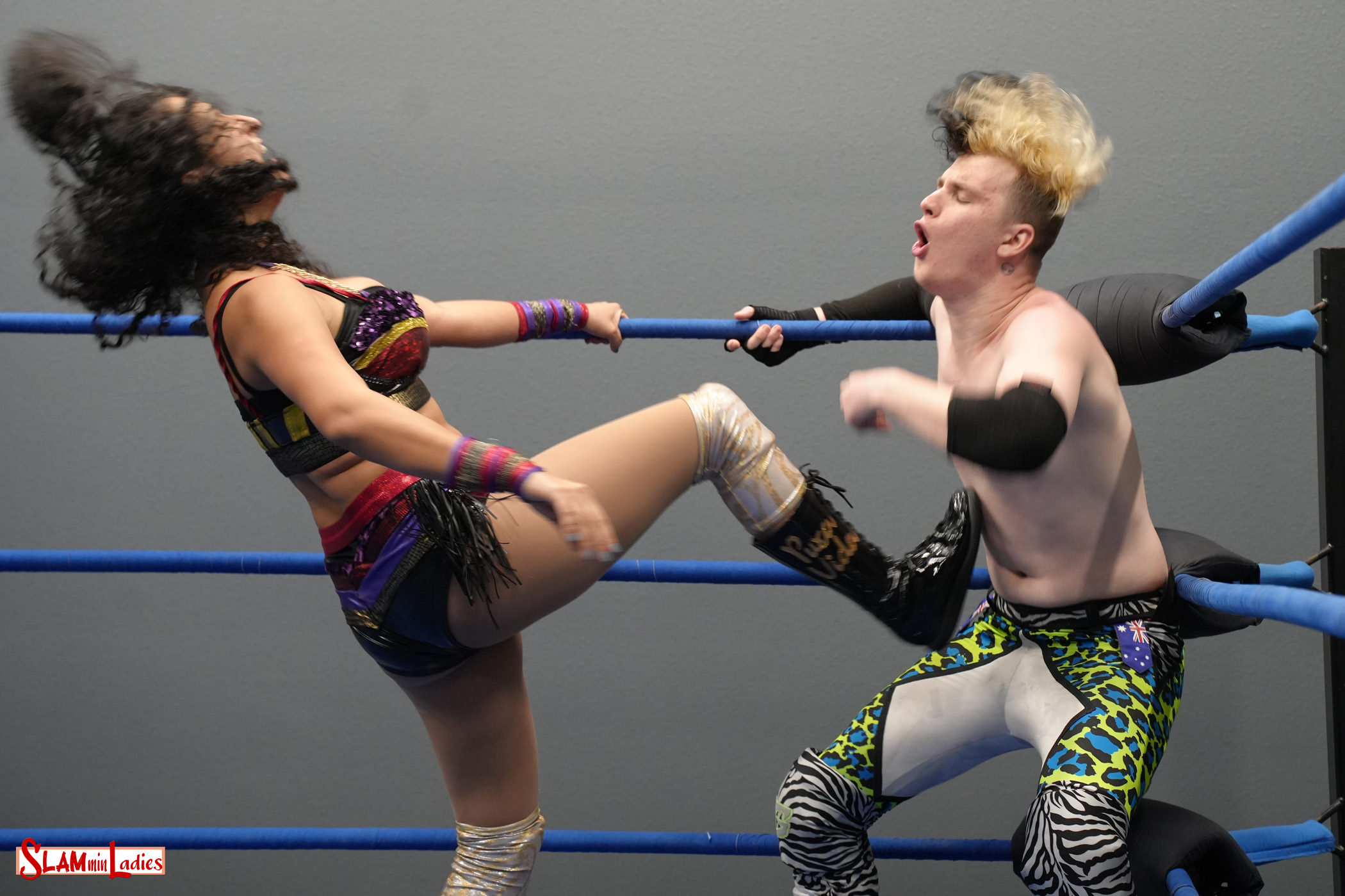 Sofia has no idea who Kobe is. Her dismissive attitude starts to get under the Aussie’s skin, but he offers a handshake nonetheless…only to take a vicious slap to the face! Castillo hurls insults at poor Kobe before offering a handshake of her own. Reid walks right into her trap and takes a face rake for his trouble. Kobe traveled an awfully long way to be made a fool of, but that’s exactly what Sophia’s keen to do here. Blasting ‘Down Under’ as she goes to work, Castillo clamps on a Sleeper and drains her foe before unloading on Kobe with kicks, face slaps, backrakes and boot chokes. Reid is sent hard into the corner and crashes to the canvas from Suplexes. Sofia comes up with a baking sheet and Kobe finally catches a break as he’s able to block her swing…only to catch the sheet and eat metal as Sophia connects with a powerful strike that drives it into his face! Battered and broken, Kobe is left flat on the canvas as Sophia scores a humiliating pin for the win.