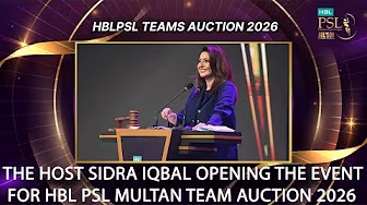 The host Sidra Iqbal opening the event for HBL PSL Multan Team Auction 2026. Watch LIVE: • LIVE - Multan Team Auction | HBL PSL 2026 #HBLPSL | #NewEra Buy official Pakistan Cricket merchandise: https://shop.pcb.com.pk/ Welcome to the official page of Pakistan Cricket Board. Get all your Pakistan Cricket updates here! You can access exclusive player interviews, match highlights, practice sessions, press conferences, coaching videos and other beyond-the-boundary content. Subscribe to our YouTube channel: https://bit.ly/SubscribePakistanCricket Like us on Facebook: / pakistancricketboard Visit our website: https://www.pcb.com.pk/