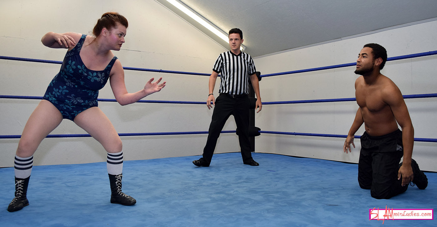Jason wears the referee stripes and introduces Thunderkitty, but when he turns to introduce her opponent the corner is empty. The frustrated Thunderkitty insists on a match and with no other wrestlers available the position is filled by…Jason Cade! The Queen of old-school wrestling takes the match to Jason and controls the action with Waistlocks, Headlocks, leg trips and Snapmares as she puts him through his paces. Cade puts a stop to Thunderkitty’s assault with a brutal double thrust to the throat before stomping her down in the corner and working her over with punches, kicks and chokes. Cade lights up Kitty with vicious backhand chops and sends her across the ring with an Irish Whip but can’t land the corner splash as Thunderkitty ducks away. Jason Cade struggles to escape Thunderkitty’s old school offense including a series of Sleeper holds, Boston Crab and a back-mounted Cravat. The action goes back and forth until a final Figure Four Leglock proves too much for one wrestler to overcome.