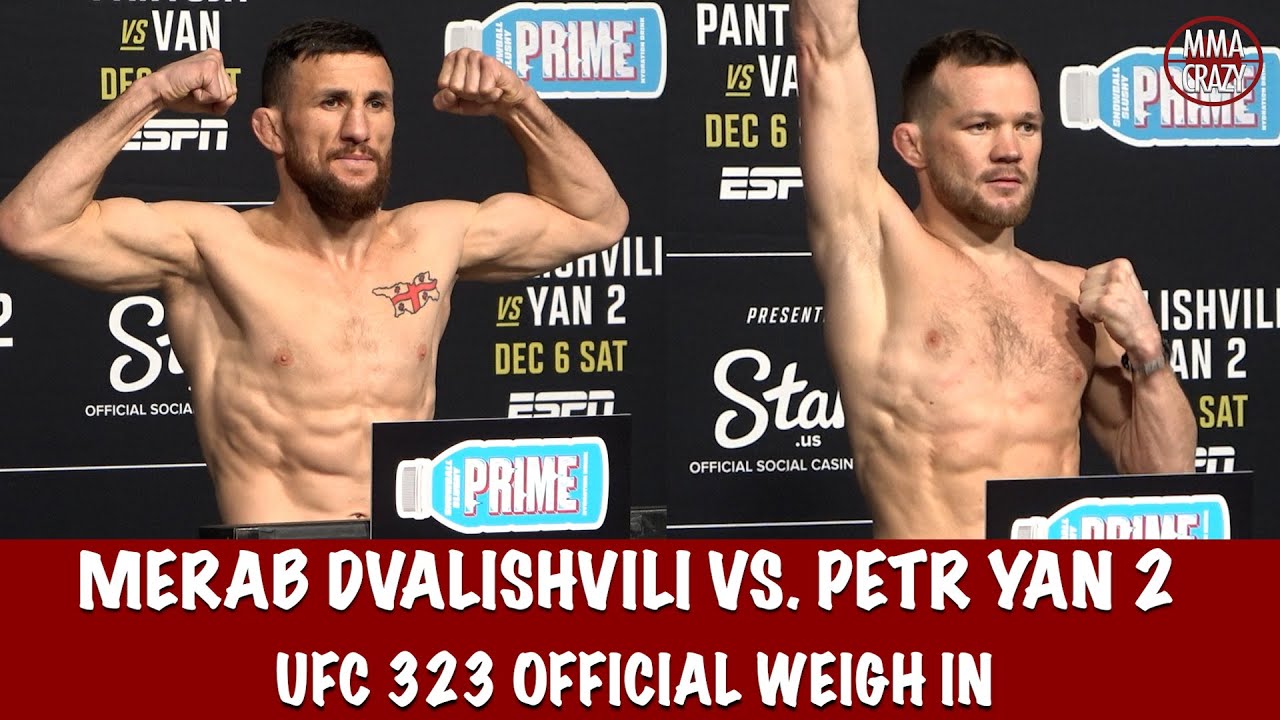 Merab Dvalishvili and Petr Yan both weigh in for UFC 323 #UFC323 #MerabDvalishvili #PetrYan Twitter: http://www.twitter.com/MMACrazy Instagram: http://www.Instagram.com/MMA_Crazy Click on the link below to subscribe http://www.youtube.com/user/mmacrazytv?sub_confirmation=1
