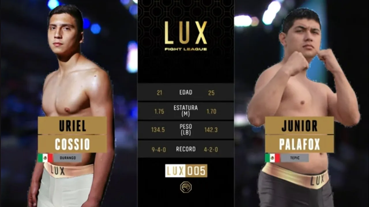 Uriel "El Pollo" Cossio hace su debut en la jaula mas prestigiosa de Latinoamerica, Lux Fight League con un record de 9-5-0 y 21 años de edad ante un Emmanuel Palafox que llegaba con un record de 1-1-0 y 25 años de edad. El primer round fue puramente de estudio entre ambos peleadores, pero en el segundo round Uriel se empleo a fondo para llevarse la pelea de forma contundente. --------------------------------------------------------------------------------------------------------------------------- 👉Únete a la comunidad de Lux Fight League: Vive la emoción de la MMA con combates poderosos, análisis profundos y contenido exclusivo: https://luxfightleague.com/ ¡Explora nuestros eventos! ➡️https://luxfightleague.com/eventos/ 📲Mantente Conectado para Más: 📲 Síguenos en las redes sociales 👇 📲 Instagram: https://www.instagram.com/luxfightleague 📲 Facebook: https://www.facebook.com/luxfightleague 📲 Twitter: https://www.twitter.com/luxfightleague 📲 TikTok: https://www.tiktok.com/@luxfightleague 💻 Official Website: https://www.luxfightleague.com