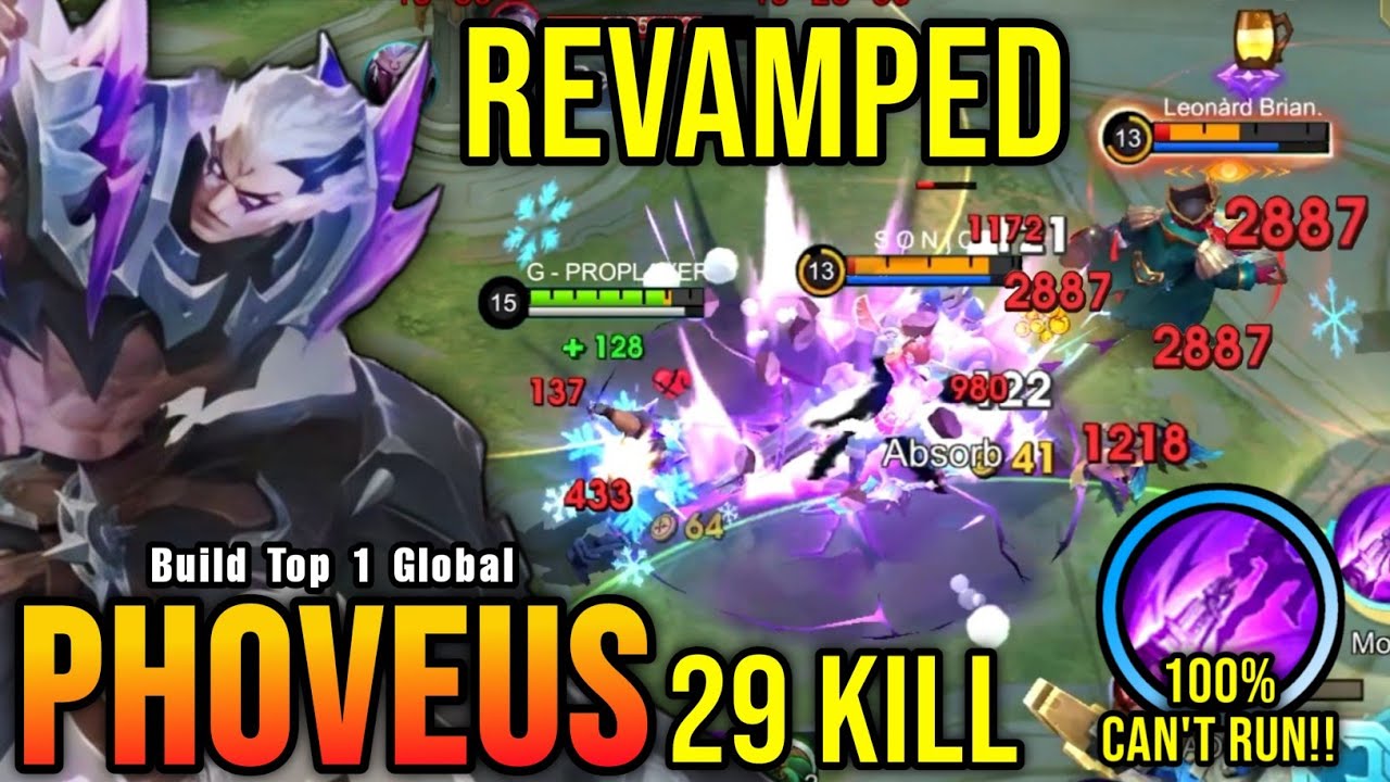 You Can't Escape from Me!! 29 Kills Phoveus Revamp 100% IMMORTAL - Build Top 1 Global Phoveus ~ MLBB